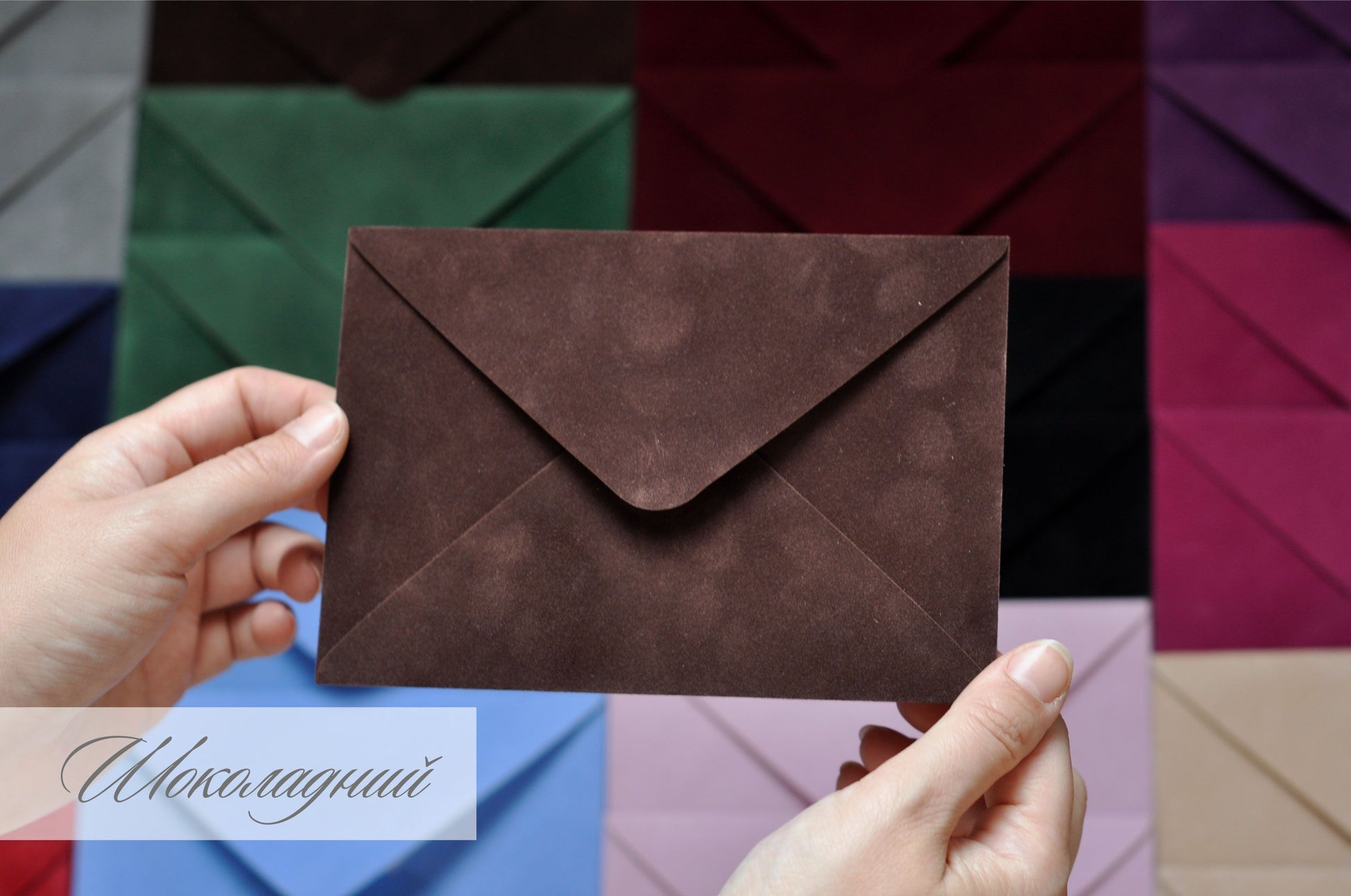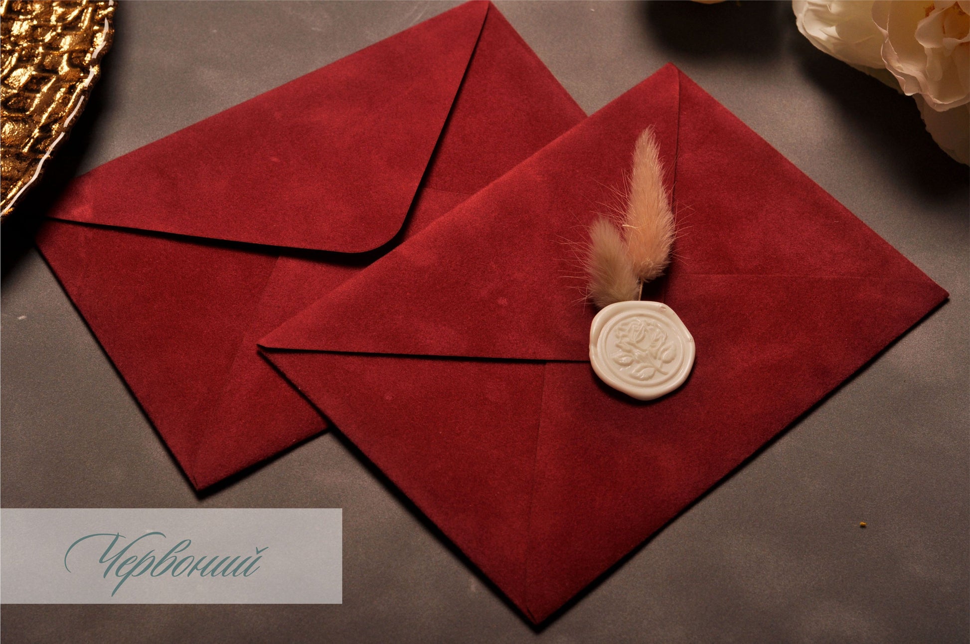 Дизайнерський бархатний (оксамитовий) конверт 10 на 15 см з трикутним клапаном