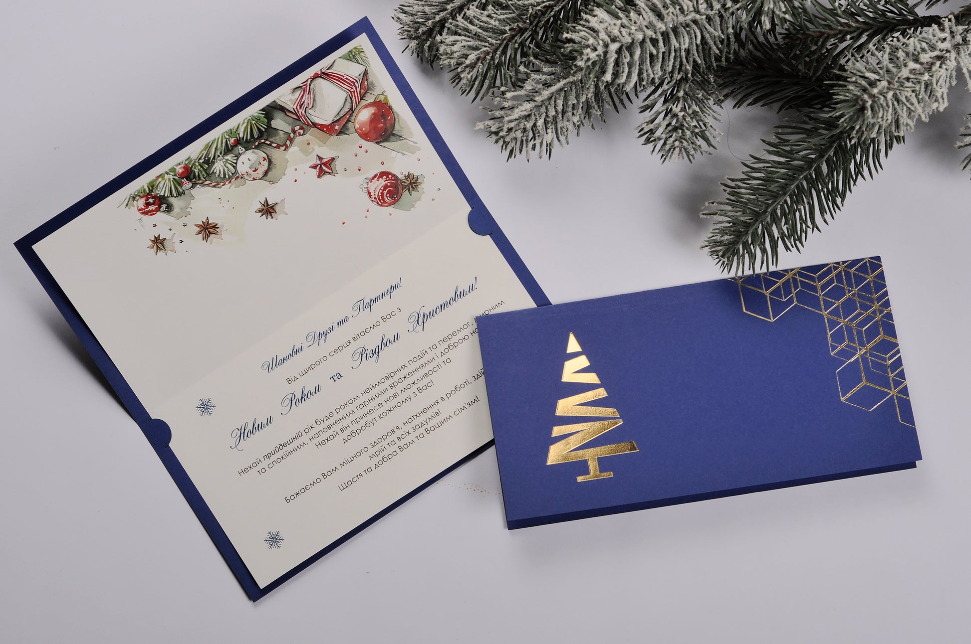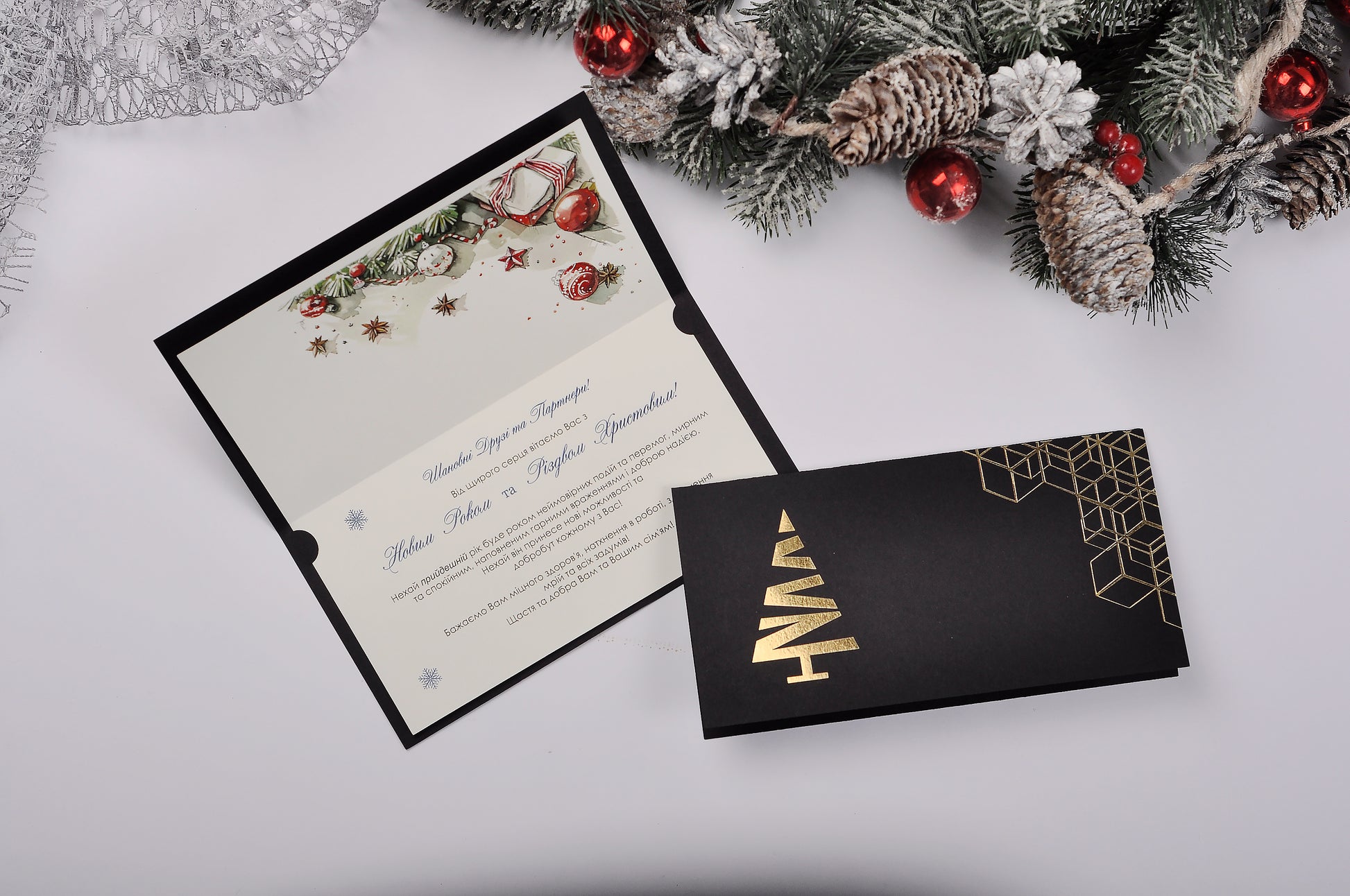 Ви маєте можливість повністю персоналізувати новорічну листівку відповідно до стилю і кольорової гами вашої компанії. Ви можете обрати матовий або металізований картон, вибрати колір обкладинки, додати ваш логотип, розмістити персональний текст та навіть зробити друк на конверті.