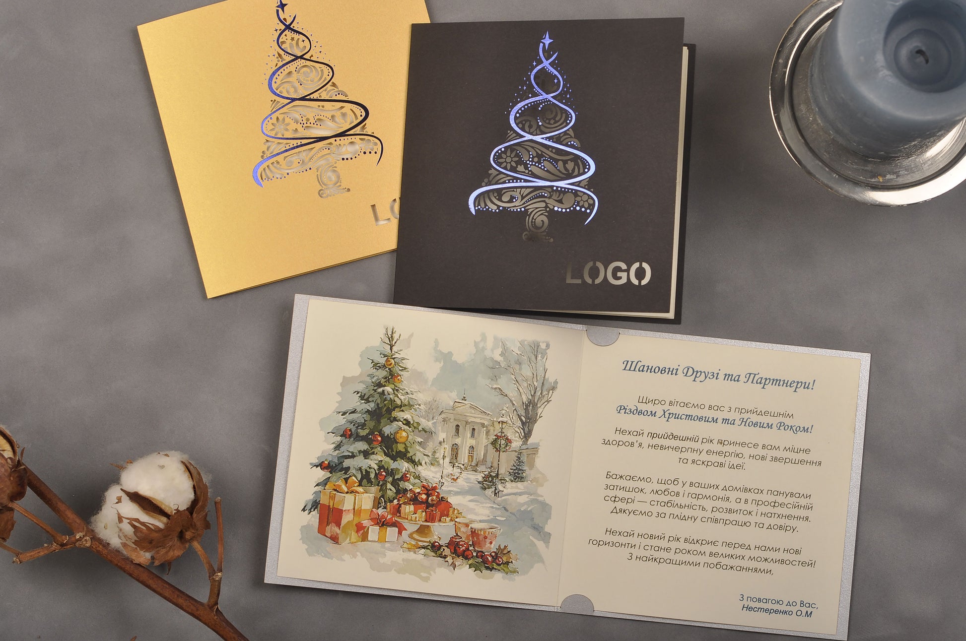 Замовляючи ці новорічні листівки, ви маєте можливість створити унікальний продукт, який ідеально відповідатиме вашим потребам та неодмінно приверне увагу ваших партнерів, колег та партнерів.
